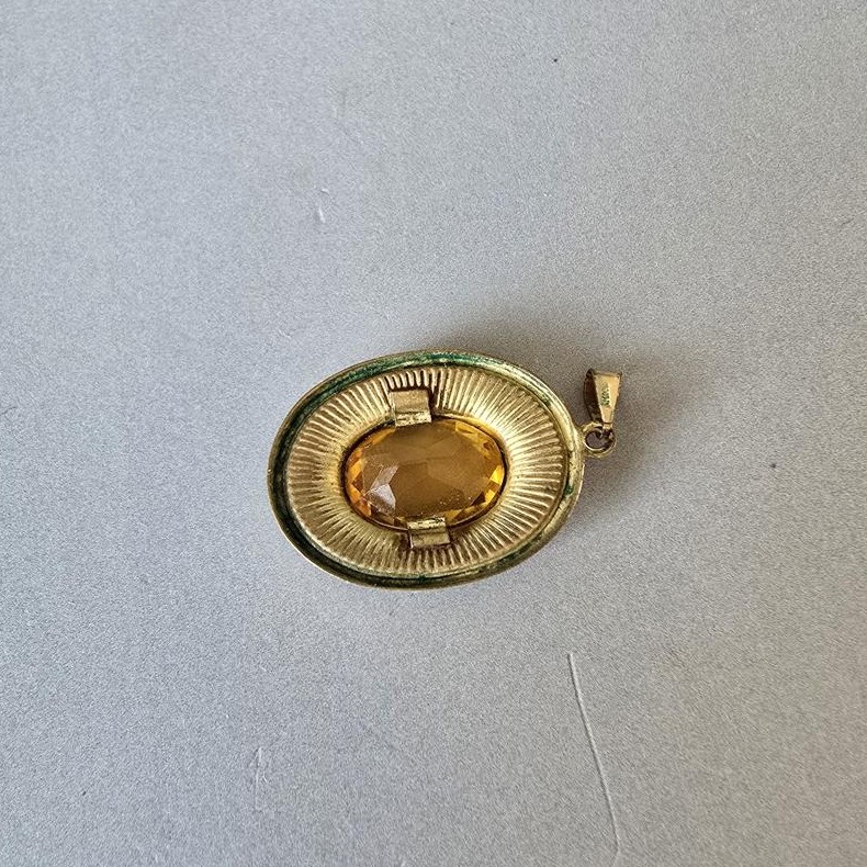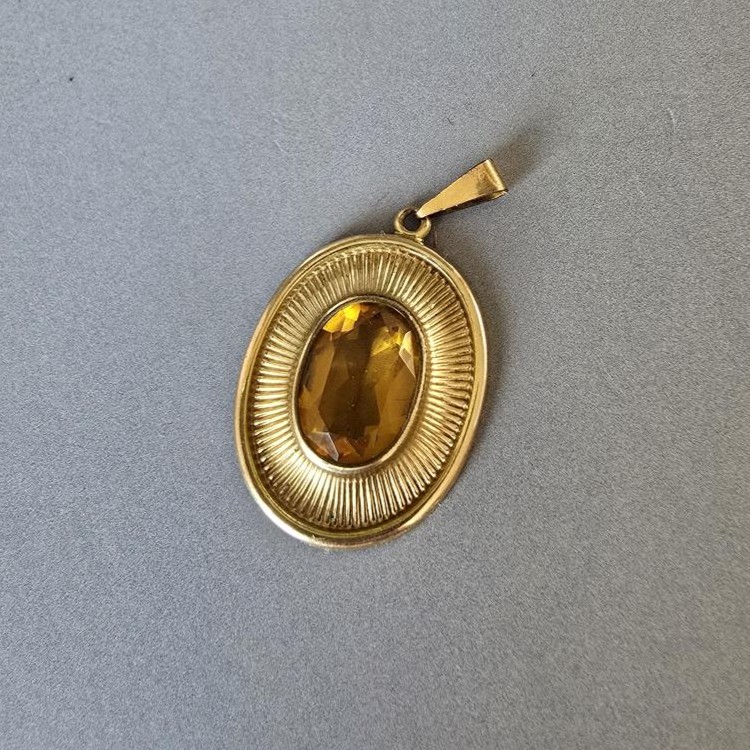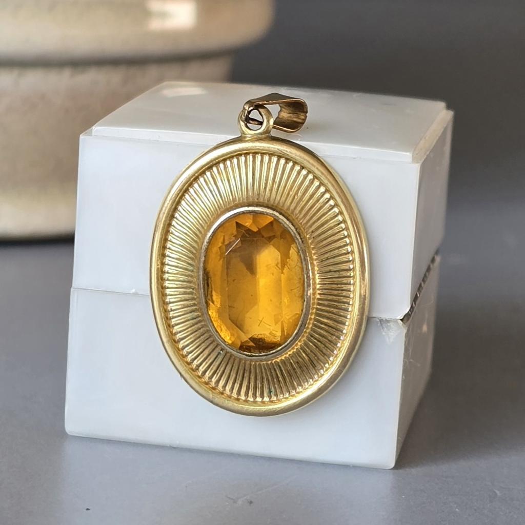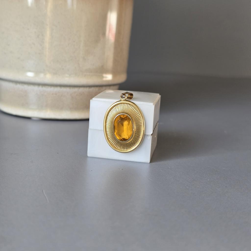 American Double mit gelbem geschliffenem Stein, wohl Glas.