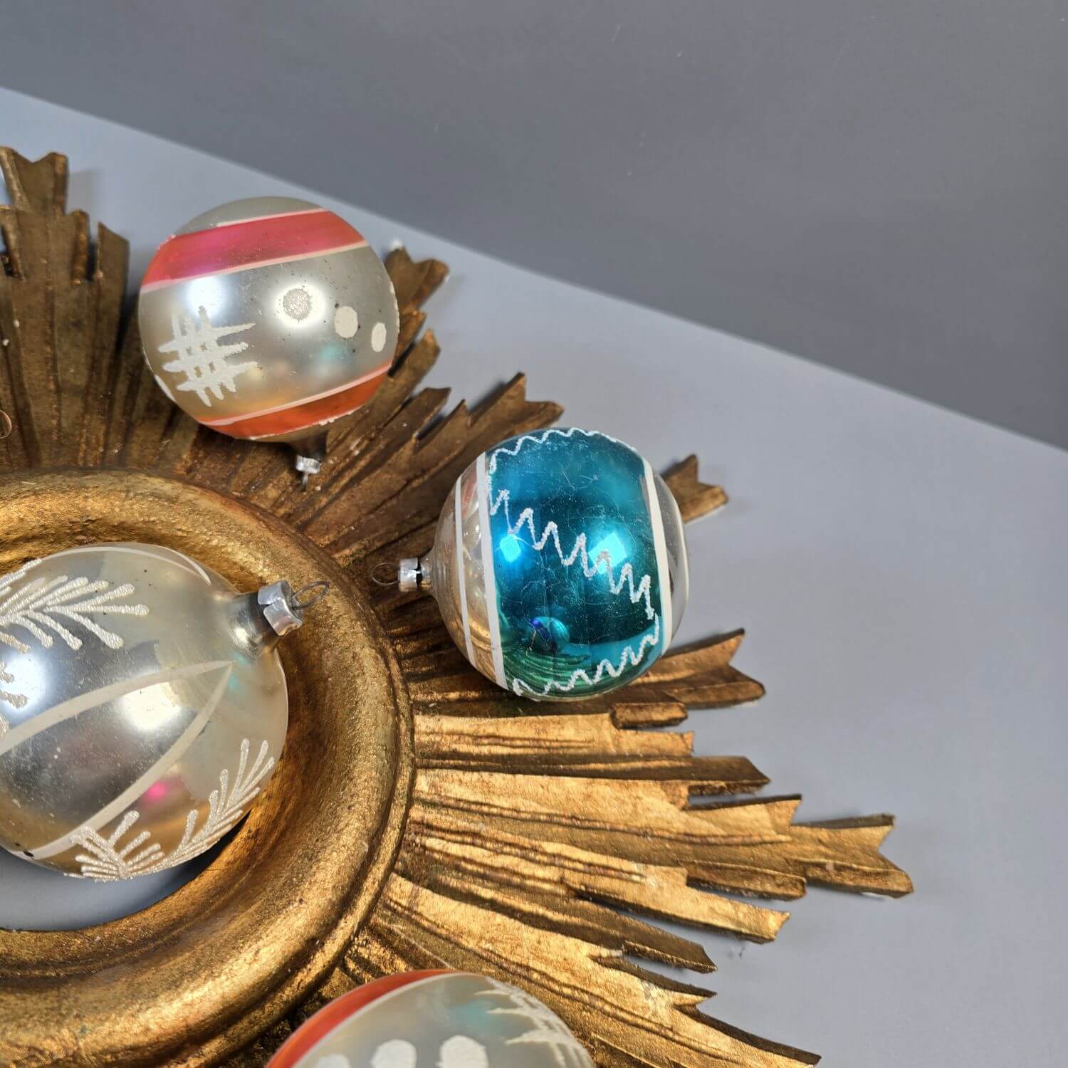 Set Christbaumkugeln 50er Jahre | Vintage Christbaumschmuck | mundgeblasene Weihnachtskugeln | Glas Christbaumkugeln Ø 7 cm | Große Weihnachtskugeln | Pastell Weihnachtskugeln | Regenbogen Christbaumkugeln | Kunstschnee Verzierung | Mid Century Christmas | Retro Weihnachtsdeko | Set 6 Kugeln | Weihnachtskugeln rosa gold hellblau