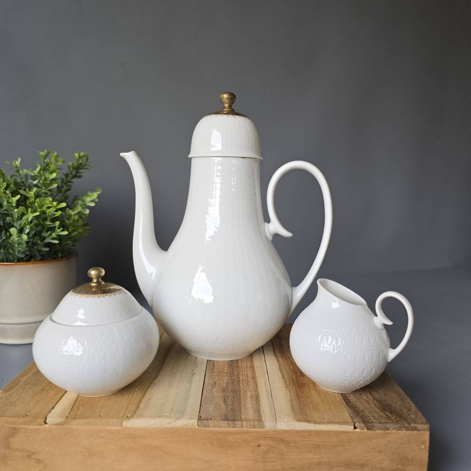 Rosenthal Romanze | Rosenthal Porzellan | Kaffeeservice | Kaffeekern | Kaffeekanne mit Zucker und Milch | Porzellan Weiß | Vintage Porzellan | Quatre Couleurs | Mid Century Tableware